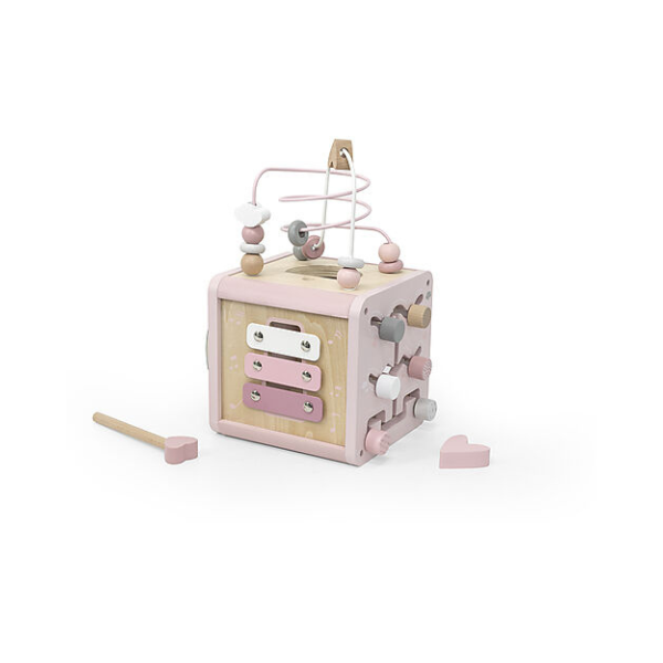 Cubo multiattività in legno Label Label di colore rosa