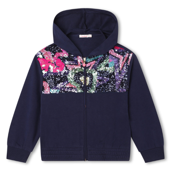 Felpa Billieblush blu con zip e paillettes