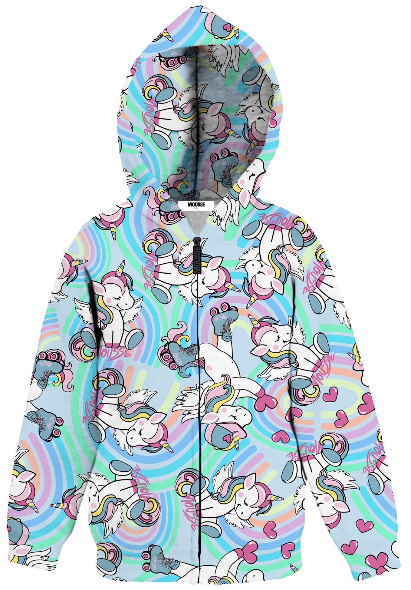 Felpa Mousse multicolor con stampe unicorno con cappuccio e zip