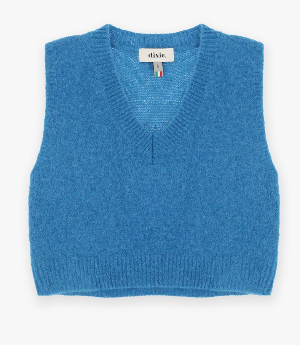 Gilet Dixie in lana color petrolio con scollo a "V"