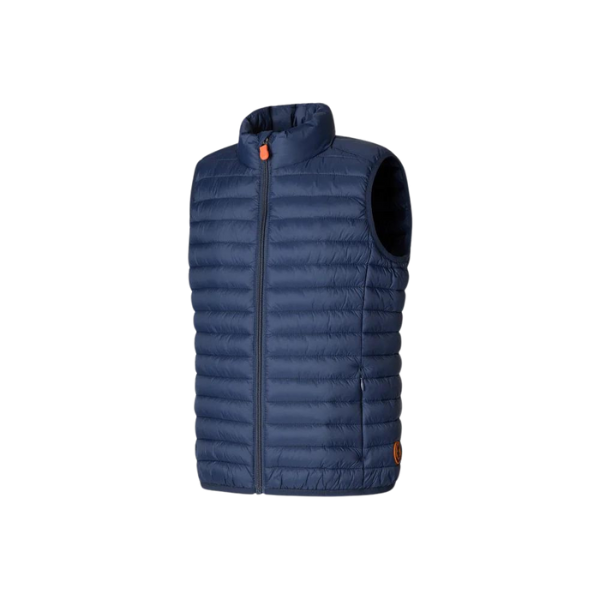 Gilet Save The Duck imbottito di colore blu scuro estremamente leggero e morbido ma allo stesso tempo resistente, garantisce protezione dall’acqua e dall’aria, assorbe l’umidità e asciuga rapidamente.