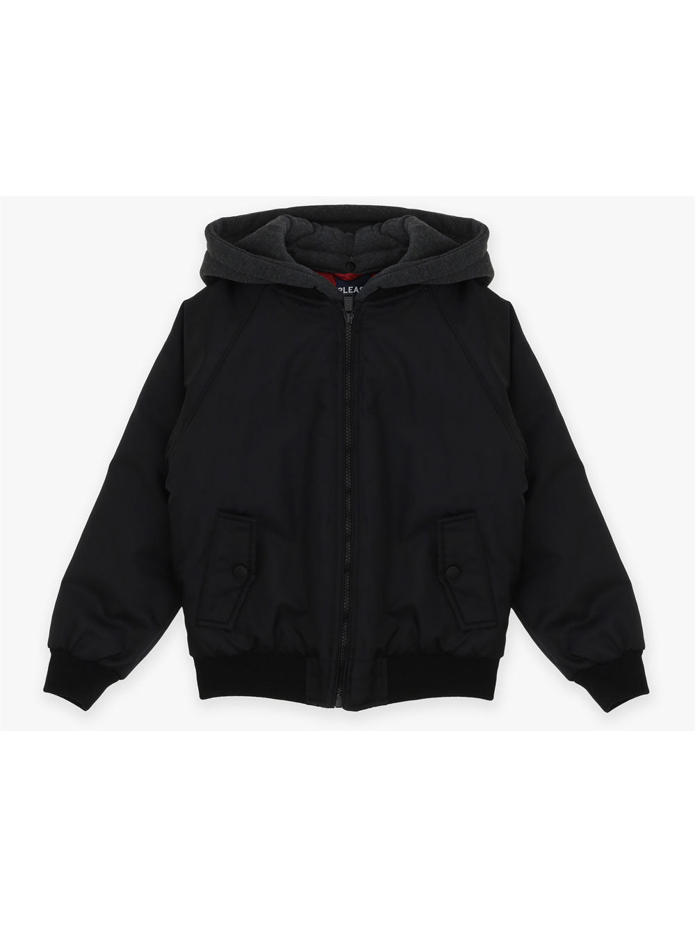 Giubbino Please imbottito nero con zip e cappuccio in felpa grigio