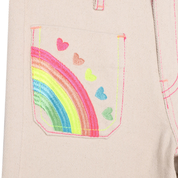 Jeans Billieblush color sabbia con tasca davanti con ricamo fantasia