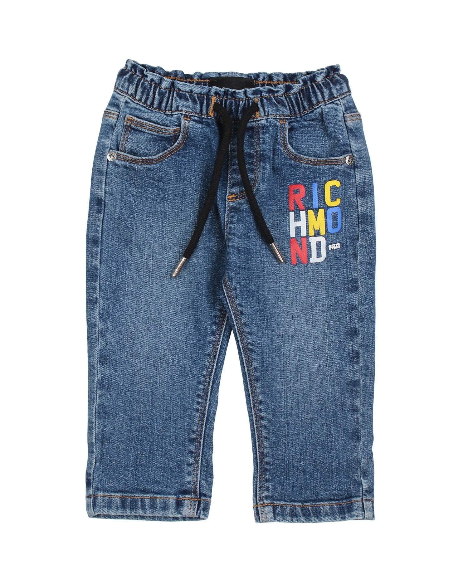 Jeans Richmond elasticizzato con scritta colorata sotto la tasca sinistra con elastico e coulisse in vita
