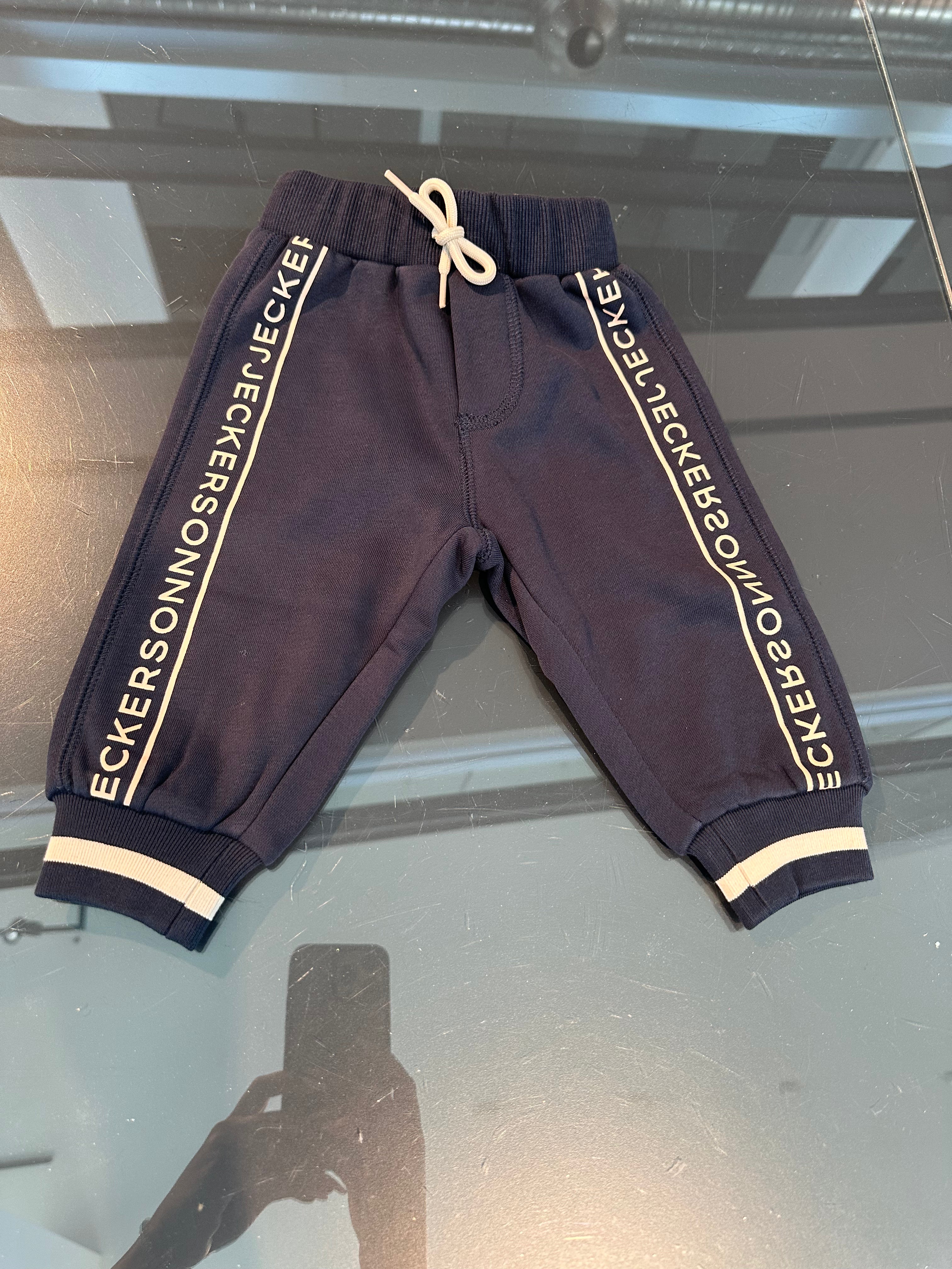 Pantalone in felpa blu con bande laterali logo beige . Composizione 80% cotone 20% poliestere