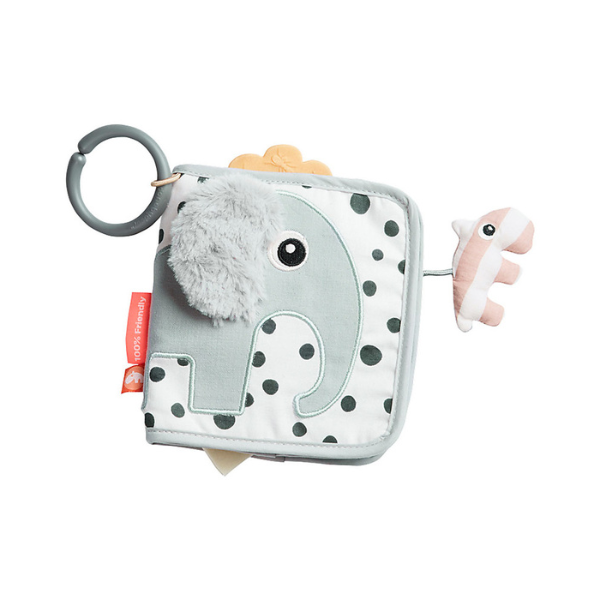 Libro multiattività in stoffa Done By Deer per sviluppare attività motorie e cognitive nei bebè