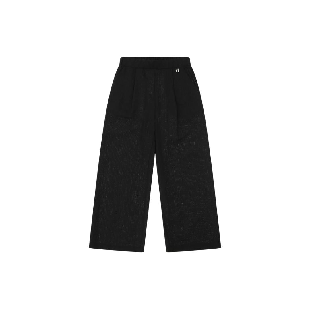 Pantalone Dixie a palazzo nero in lino con elastico in vita e tasche
