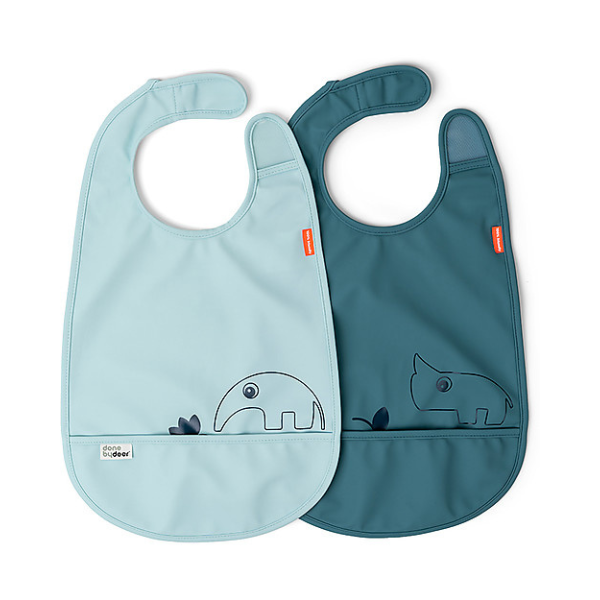 Set 2 pezzi bavaglia Done By deer impermeabili con tasca e chiusura con velcro sul collo