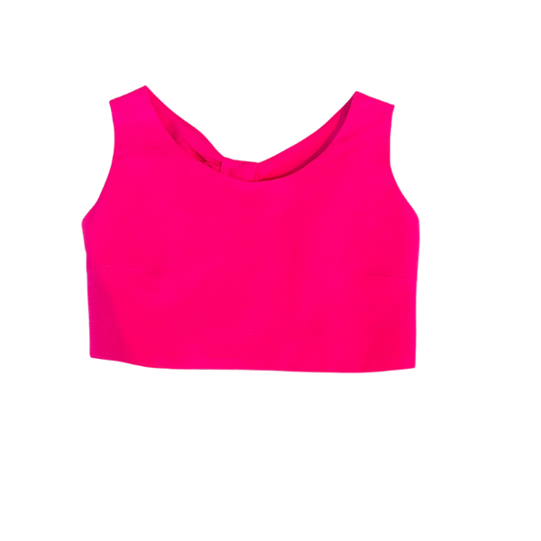 Top Dixie fucsia smanicato crop con fiocco e arricciatura sul retro