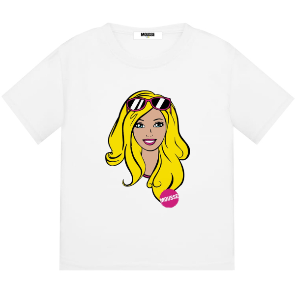 Tshirt Mousse mezza manica con stampa Barbie con occhiali da sole sopra la testa