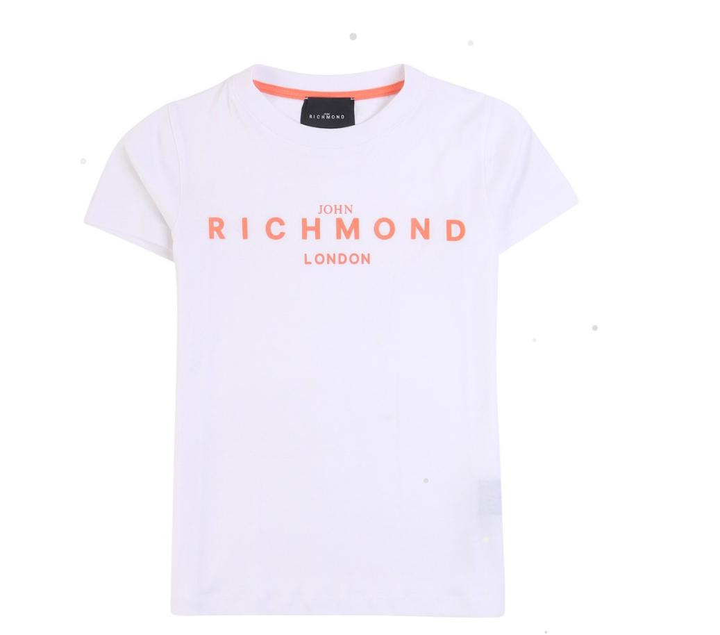 Tshirt Richmond mezza manica di colore bianco con scritta color pesca sul davanti